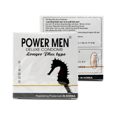 – Chống xuất tinh sớm, kéo dài thời gian quan hệ: Bao cao su Power Men Longer Plus bổ sung 9% Benzocain – chất gây tê giúp quan hệ lâu hơn vào đầu bao (các dòng bao cao su khác thường chỉ chứa 5% Benzocain), có tác dụng gây tê giúp cho giảm kích thích lên dương vật, qua đó giúp nam giới kìm chế tốt hơn tránh được xuất tinh sớm. Đây sẽ là “món quà” đầy bất ngờ mà các quý ông dành tặng cho một nửa của mình, thổi bùng lên những ham muốn mãnh liệt, những giây phút cao trào “dữ dội” cho nàng phải hét lên vì sung sướng và cảm giác thỏa mãn đến tột đỉnh chưa từng có.